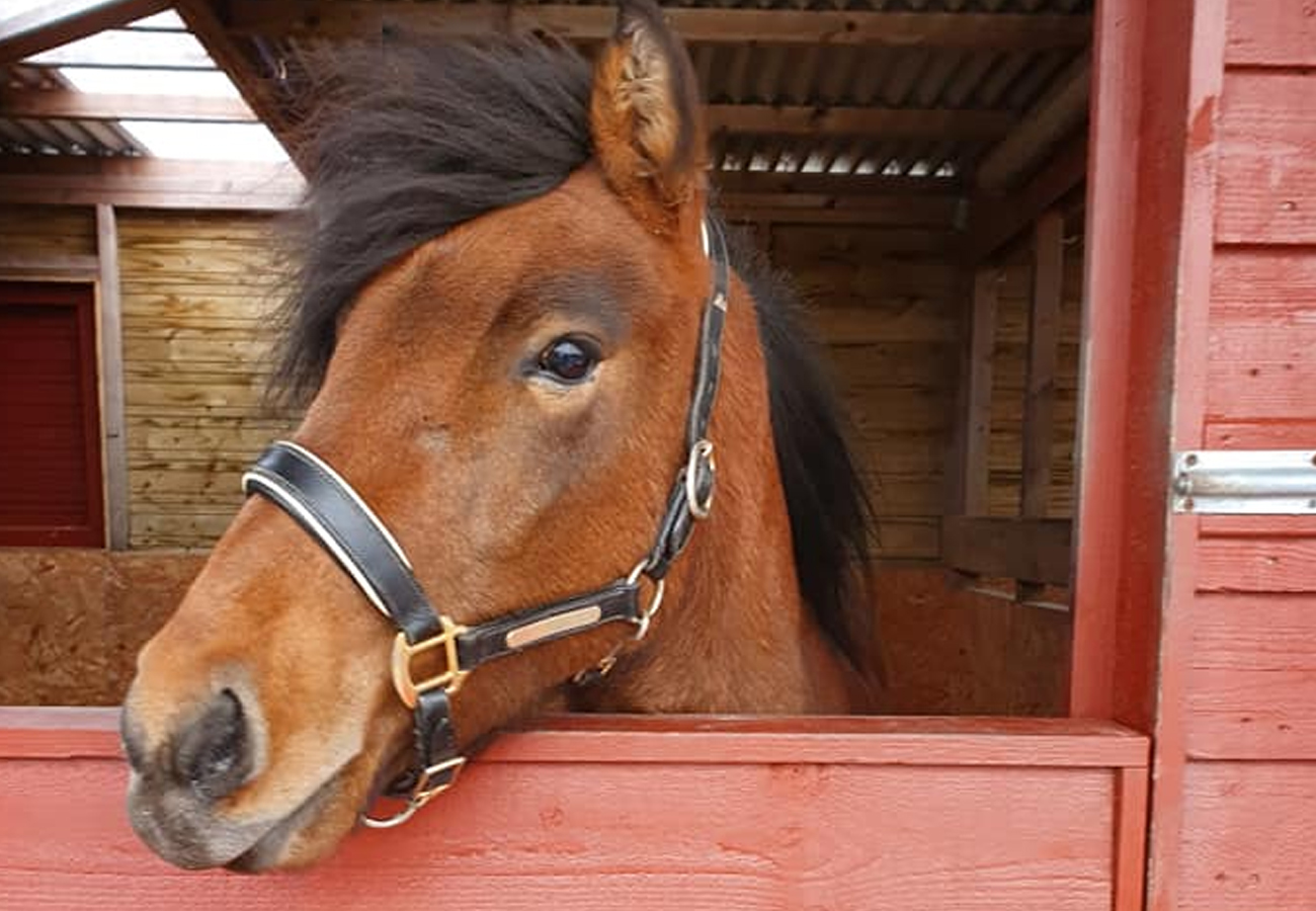 Hörður is the horse most people have started their riding journey with at Houlls. He’s a dark bay (also known as seal bay) gelding with a snip.