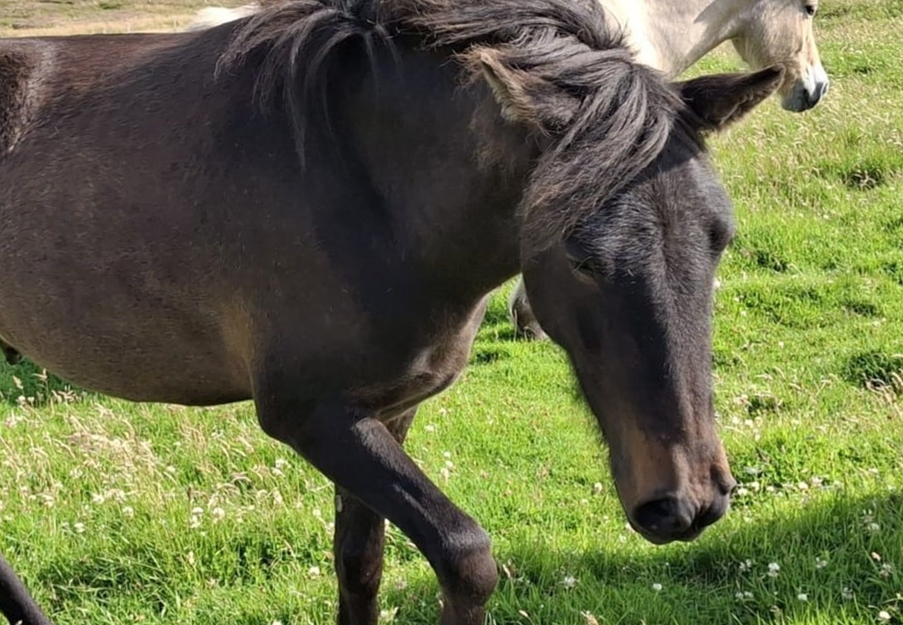 Þoka is our kind elderly lady. She’s a black dun (also known as blue or mouse dun) and is loved by both kids and adults for her sweet temperament.
